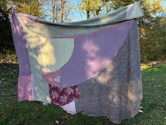 Textille picture made from all types of materials that are left behind. Special details are made of factory tissue samples and sewing leftovers. Nothing is wasted at the end. It gives a special one&only personal touch in your home, on your bed, sofa or window.